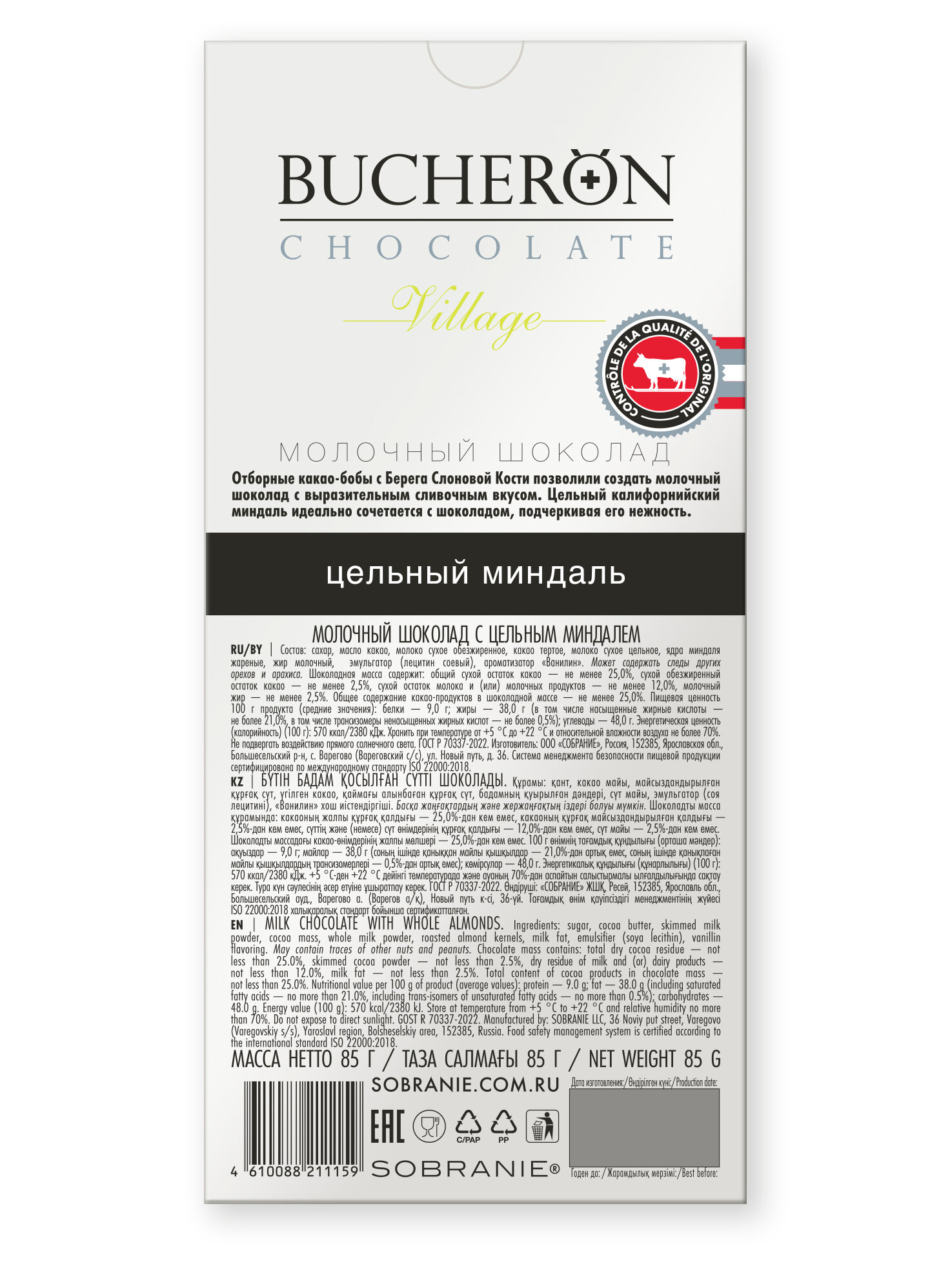 Купить Шоколад молочный Bucheron VILLAGE с цельным миндалем 5 шт. по 85г с доставкой по всей России. Шоколад молочный Bucheron VILLAGE с цельным миндалем 5 шт. по 85г: сравнение цен, характеристики, фото, актуальное наличие и цены.