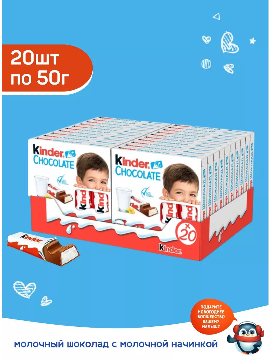 Шоколад Молочный Kinder Chocolate с молочной начинкой, 20 шт по 50 г: сравнение цен, характеристики, фото, актуальное наличие и цены.
