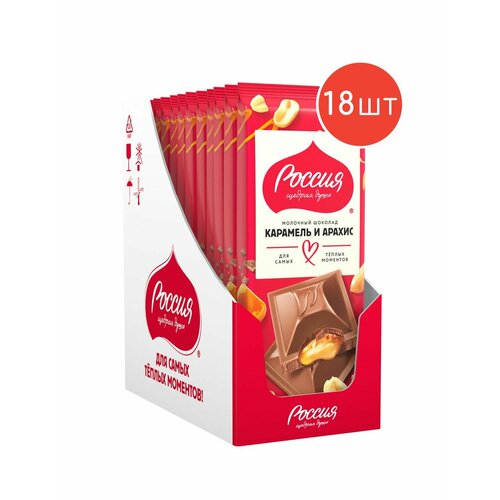 Купить Шоколад молочный Россия-щедрая душа! Карамель-арахис 75г 18шт с доставкой по всей России.