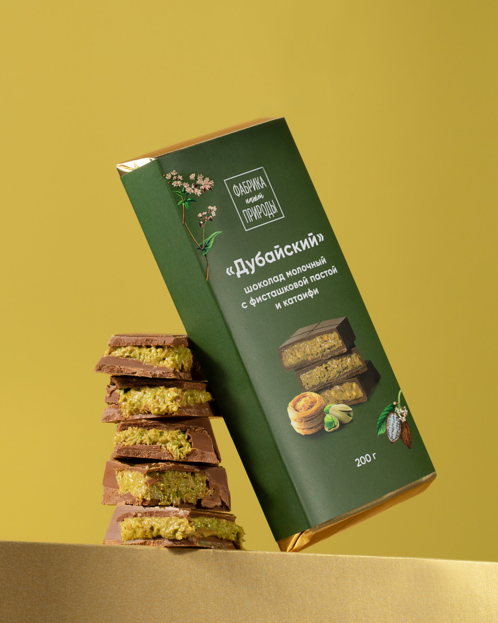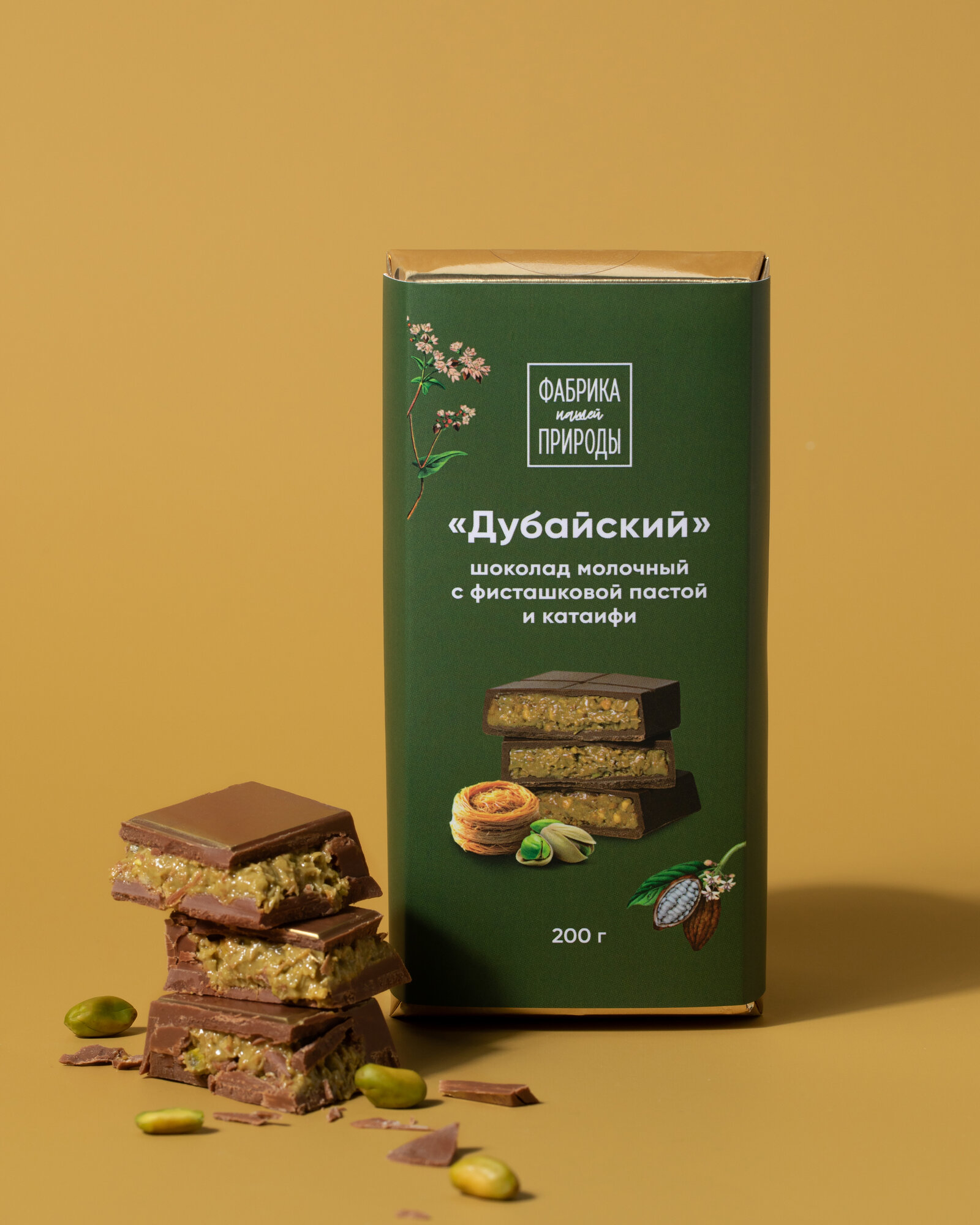 Новинка от Фабрики природы - абсолютный хит 2024г среди шоколадных плиток Дубайский шоколад с фисташковой пастой и катаифи. Нежнейшая начинка с хрустящим катаифи в классическом молочном шоколаде - для ценителей, любителей, гурманов и новаторов. Этот шоколад не оставит никого равнодушным. В составе зерна татарской гречихи - то, что отличает шоколад Фабрики природы. С любовью произведенное лакомство