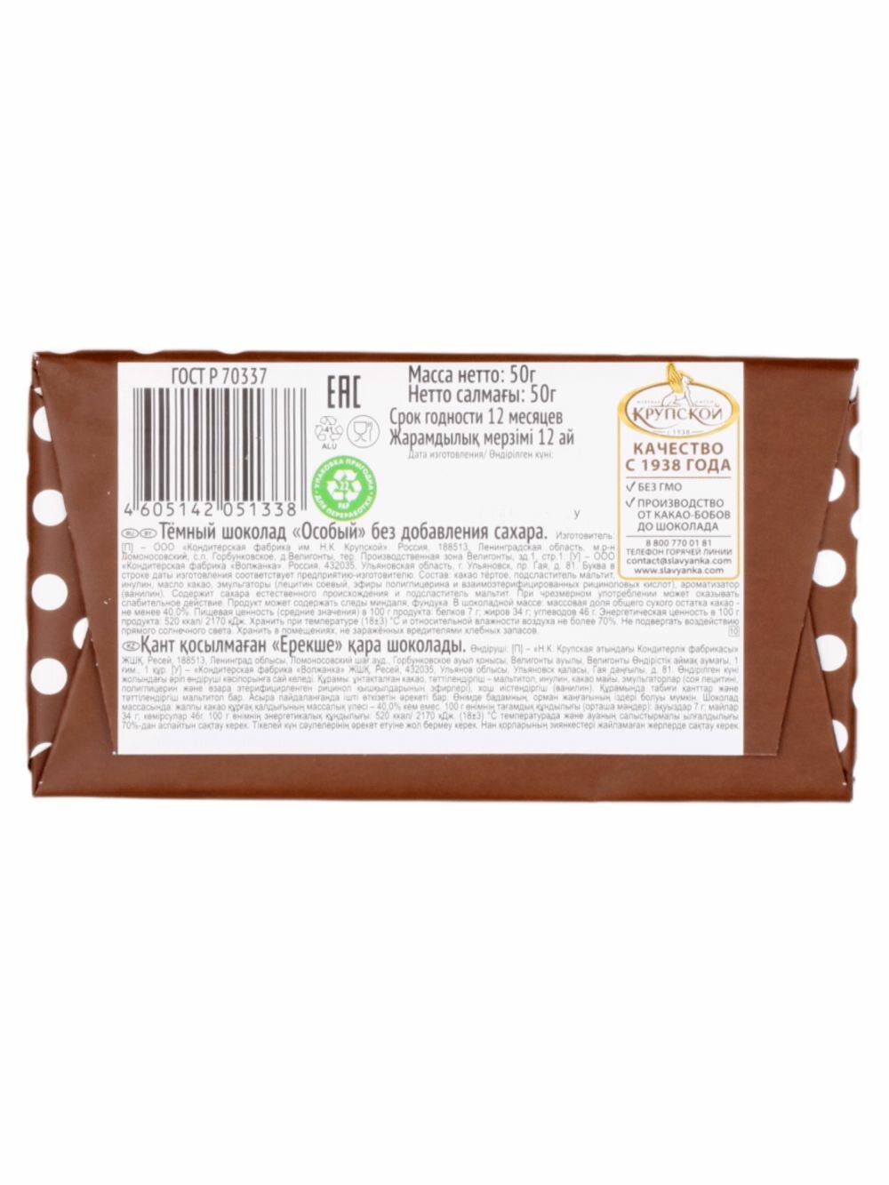 Купить Шоколад Особый темный без сахара, 50 грамм набор из 6 плиток с доставкой по всей России.