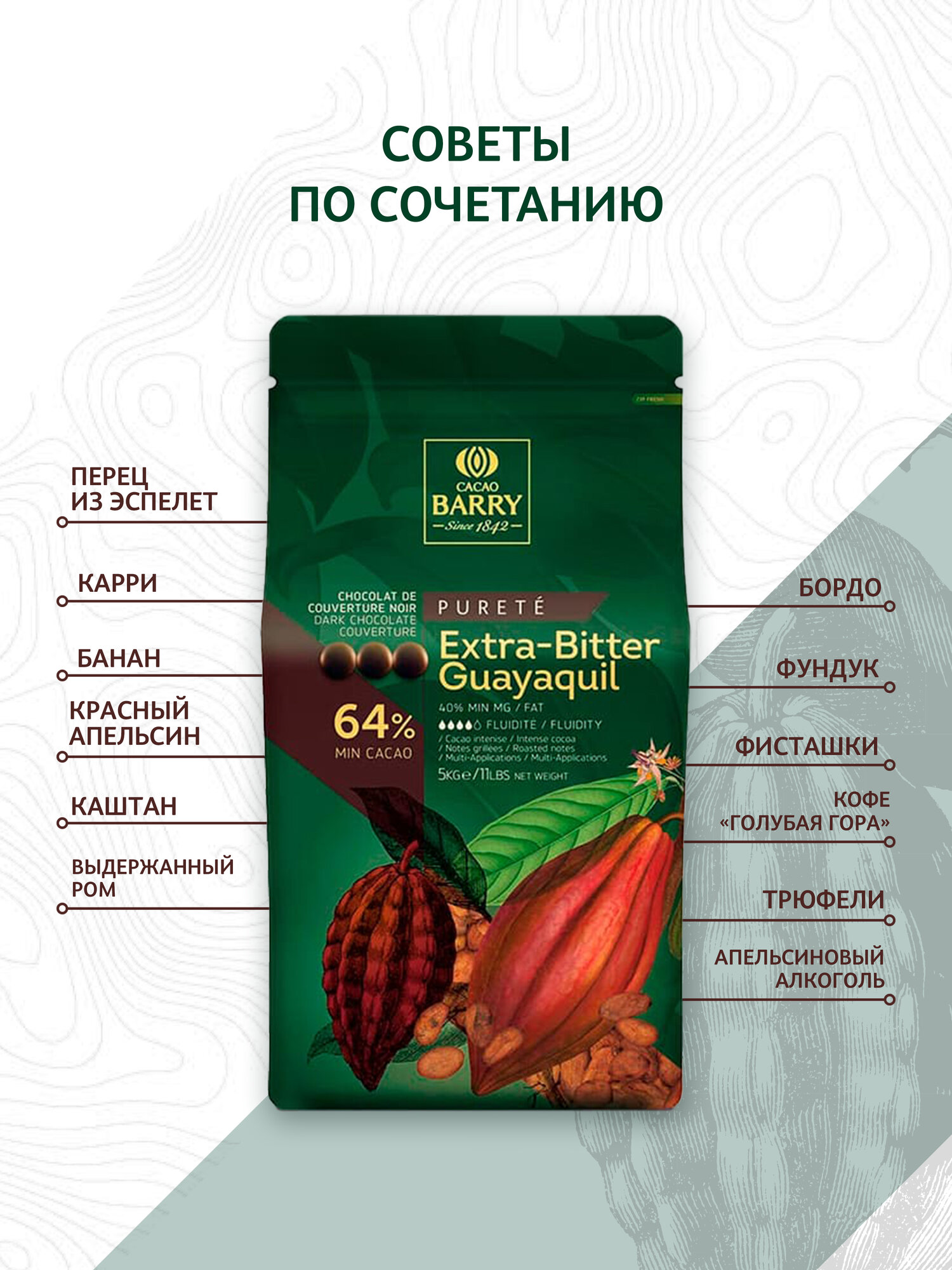 Купить Шоколад темный Extra-Bitter Guayaquil 64% Cacao Barry (Какао Барри) 5 кг с доставкой по всей России.