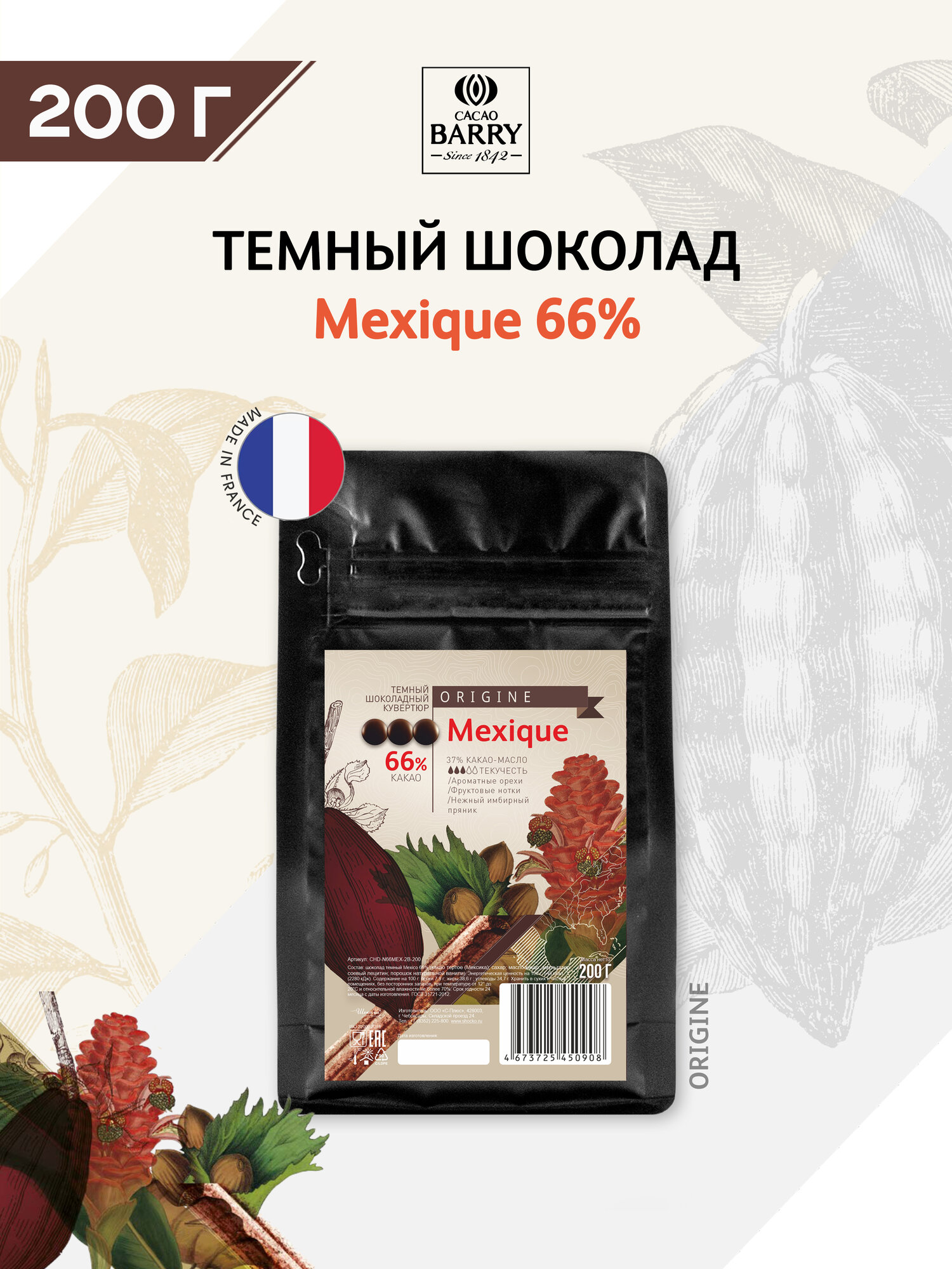 Купить Шоколад темный Cacao Barry Mexico 66%, 200 гр. Кондитерский шоколад в каллетах. с доставкой по всей России. Шоколад темный Cacao Barry Mexico 66%, 200 гр. Кондитерский шоколад в каллетах.: сравнение цен, характеристики, фото, актуальное наличие и цены.