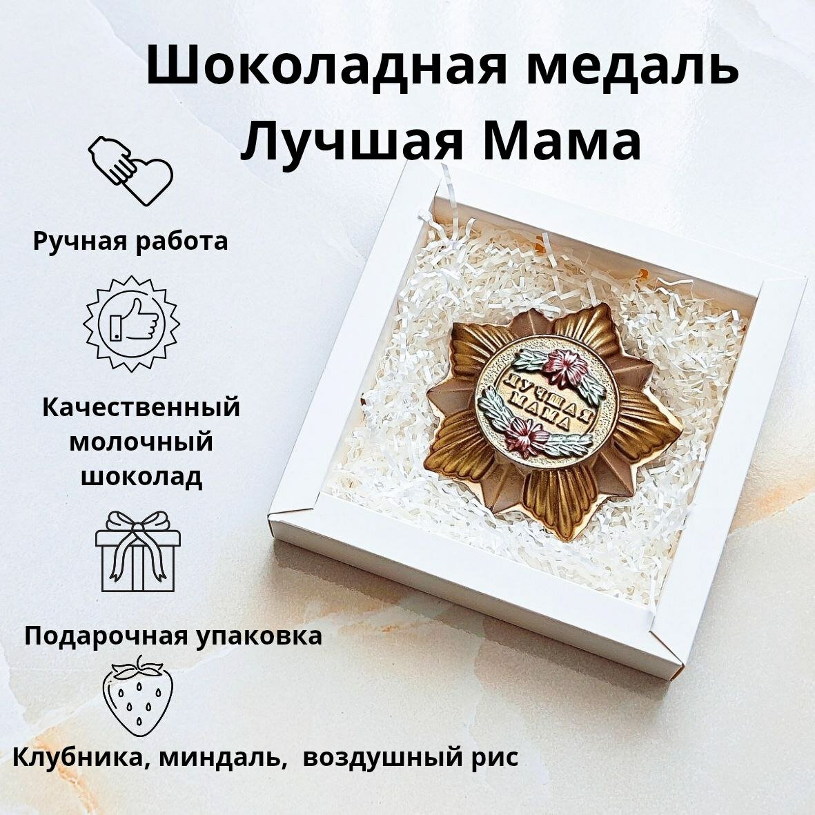 Купить Шоколадная медаль Лучшая мама, с клубникой, миндалем и хрустящими шариками, для мамы, подарок, 78 г с доставкой по всей России.