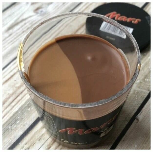 Паста шоколадная Mars, 200 г. Паста Mars 200 г — двухслойный десерт из шоколада и нуги, который по вкусу напоминает знаменитый батончик. Но продукт в стеклянной банке имеет мягкую консистенцию, поэтому легко намазывается на свежий белый хлеб, тосты или булочки. Также его можно сочетать с домашними блинчиками, оладьями или сырниками. Паста отлично подходит для энергоемкого завтрака и станет подходящим дополнением к чаю или кофе.