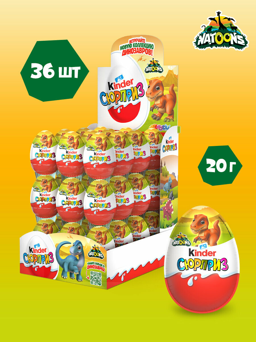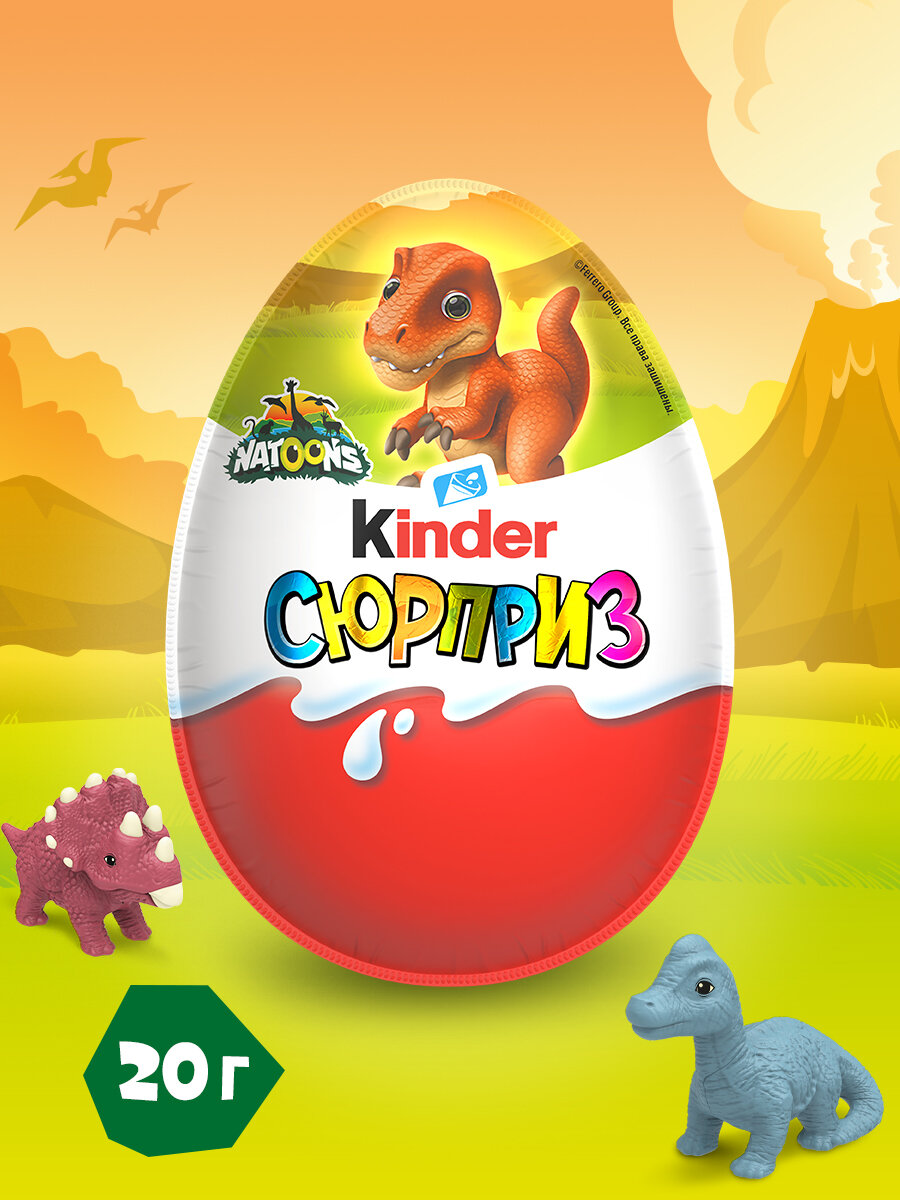 Купить Шоколадное яйцо Kinder® Сюрприз с молочным внутренним слоем и игрушкой внутри, коллекция Natoons Dinos, 20г*36шт с доставкой по всей России. Шоколадное яйцо Kinder® Сюрприз с молочным внутренним слоем и игрушкой внутри, коллекция Natoons Dinos, 20г*36шт: сравнение цен, характеристики, фото, актуальное наличие и цены.