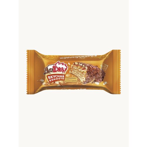 Шоколадные конфеты Даёжъ от Essen с карамелью и арахисом криспи - это укрупненные конфеты, состоящие из хрустящих вафель, нежной начинки со вкусом сливок, покрытые мягкой карамелью, дробленным арахисом и криспи. Конфеты Даёжъ Essen не содержат ГМО и являются абсолютно безопасными для здоровья.