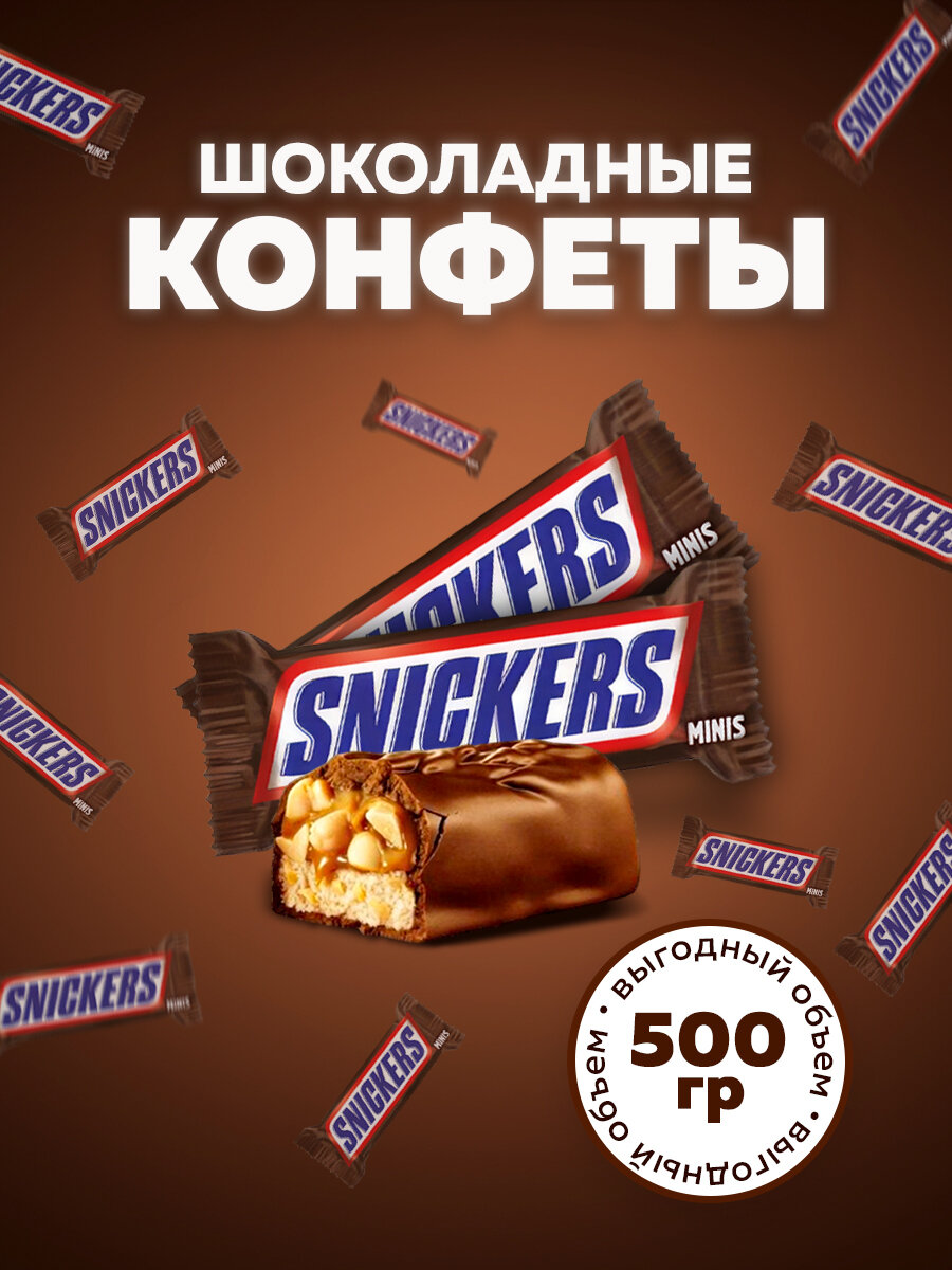 Шоколадные конфеты мини «MonoMinis» Snickers 500г молочный шоколад, нуга, арахис: сравнение цен, характеристики, фото, актуальное наличие и цены.