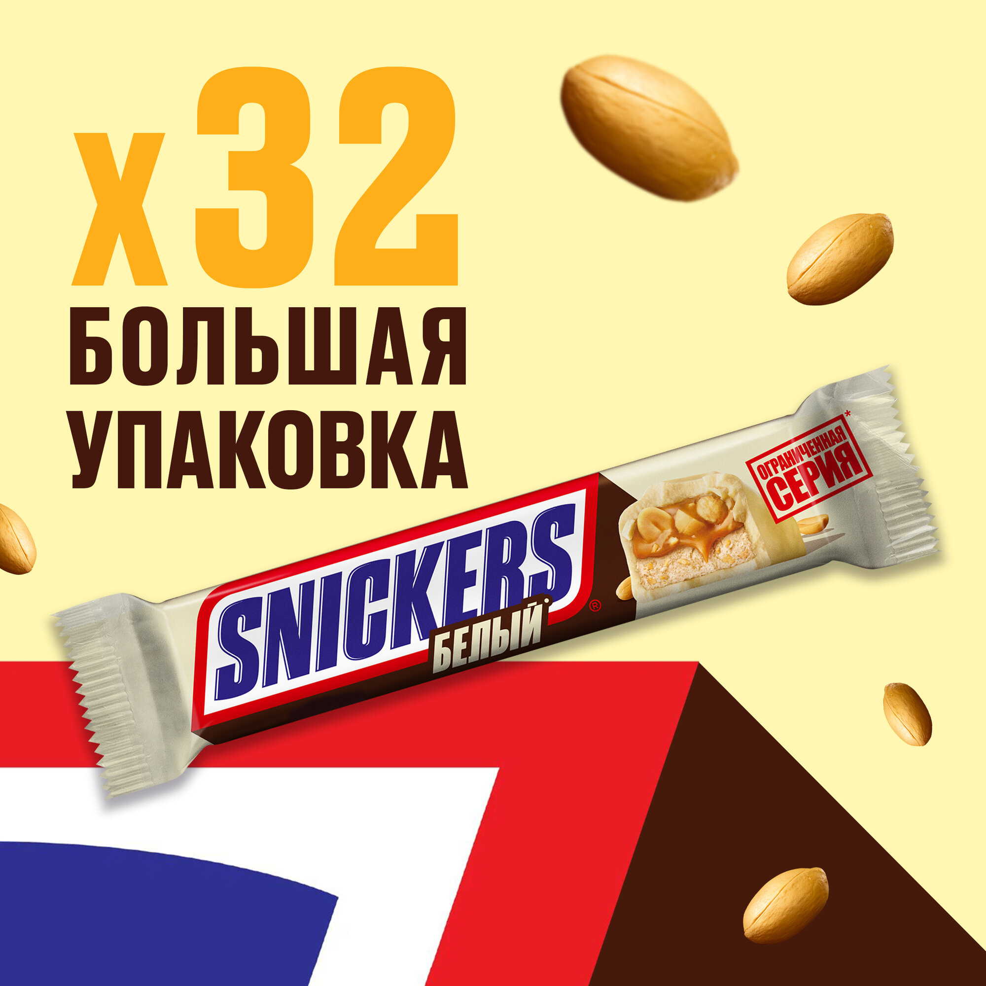 Шоколадные батончики Snickers Белый; 32 шт по 81 г: сравнение цен, характеристики, фото, актуальное наличие и цены.