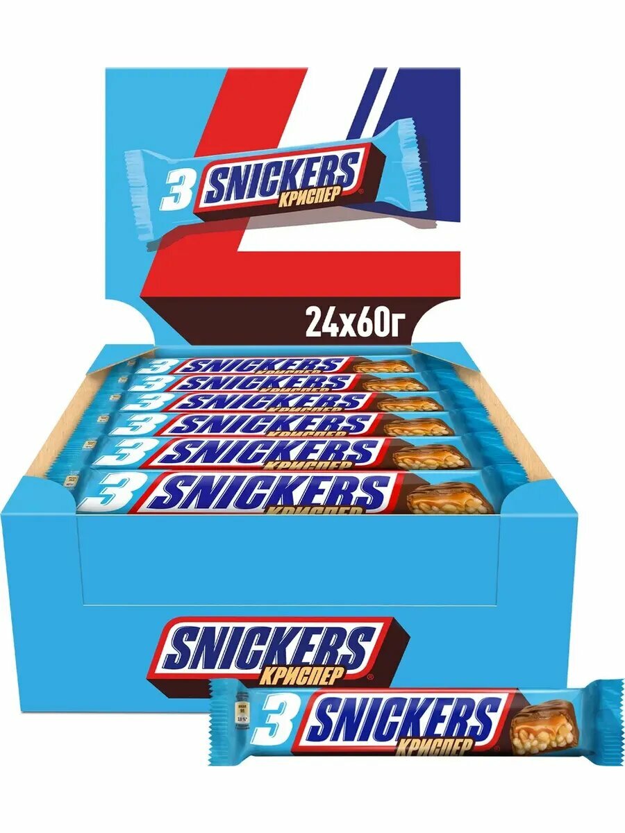 Купить Шоколадный батончик Snickers Криспер, арахис и карамель, 60 гр, 24 штук с доставкой по всей России. Шоколадный батончик Snickers Криспер, арахис и карамель, 60 гр, 24 штук: сравнение цен, характеристики, фото, актуальное наличие и цены.