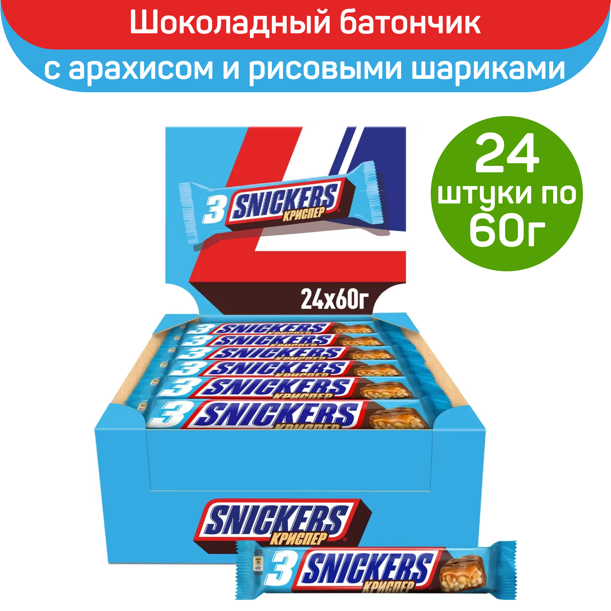 Купить Шоколадный батончик Snickers Криспер с карамелью, арахисом и хрустящими рисовыми шариками, 24 шт по 60 г с доставкой по всей России. Шоколадный батончик Snickers Криспер с карамелью, арахисом и хрустящими рисовыми шариками, 24 шт по 60 г: сравнение цен, характеристики, фото, актуальное наличие и цены.