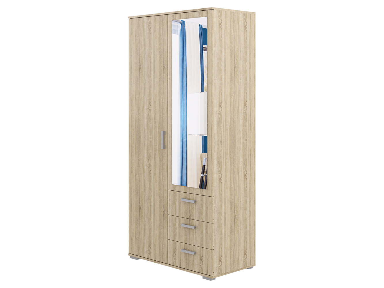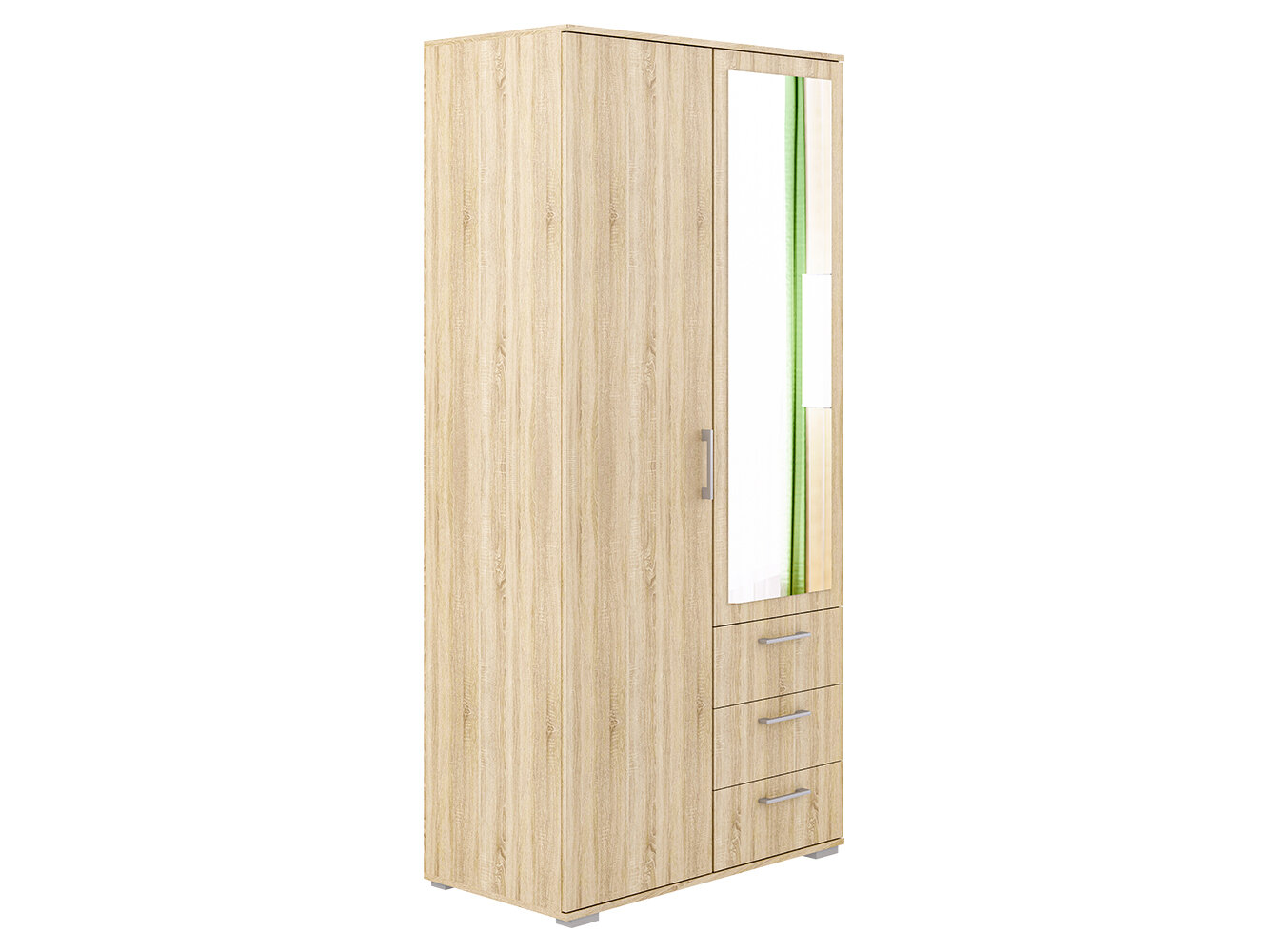 Шкаф распашной двухдверный с ящиками и зеркалом «ШОН-14»; ВхШхГ: 2100х800х540мм. Конструкция включает в себя: вместительная и продольная полка, две ниши, штанга для одежды, стационарная тумба с тремя выдвижными ящиками, зеркало. Регулируемые хромированные опоры компенсируют возможные неровности пола. Модуль к данной модели: угловой стеллаж «СПУ-5» с открытыми полками. Изделие МФ «Пирамида» выполнено из высококачественного, износостойкого и экологичного материала – ЛДСП класса Е1, толщиной 16мм. Края обработаны ударопрочной кромкой ПВХ, что значительно увеличивает срок эксплуатации изделия. Для сборки используется фурнитура от ведущих мировых производителей. Все изделия фабрики сертифицированы и абсолютно безопасны для здоровья.