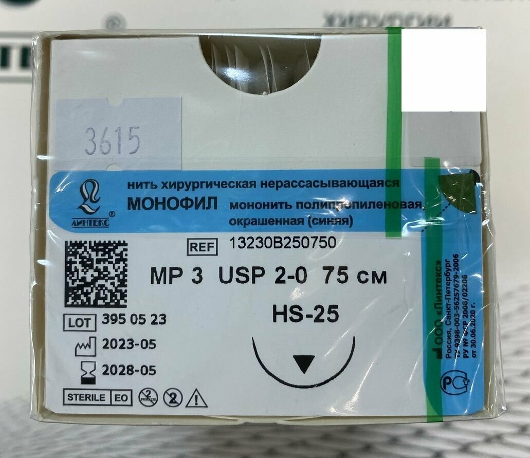 МОНОФИЛ мононить Полипропилен, USP 2-0 (МР 3) синяя 75 см, с иглой Режущая HS-25, (25 шт/уп), шовный хирургический материал Линтекс (Россия): сравнение цен, характеристики, фото, актуальное наличие и цены.