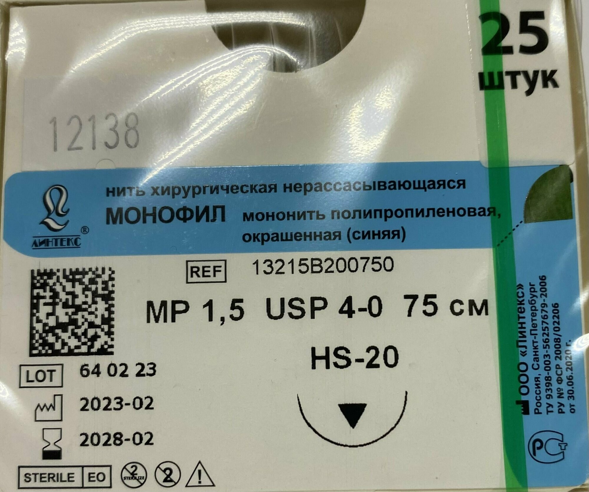 МОНОФИЛ мононить Полипропилен, USP 4-0 (МР 1,5) синяя 75 см, с иглой Режущая HS-20, (25 шт/уп), шовный хирургический материал Линтекс (Россия): сравнение цен, характеристики, фото, актуальное наличие и цены.