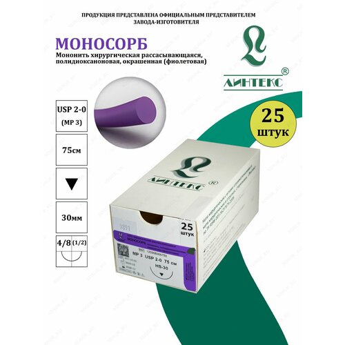 МОНОСОРБ мононить Полидиоксанон, USP 2-0 (МР 3) фиолетовая 75 см, с иглой Режущая HS-30, (25 шт/уп), шовный хирургический материал Линтекс (Россия): сравнение цен, характеристики, фото, актуальное наличие и цены.