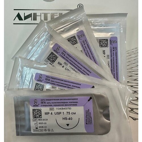 ПГА нить плетеная Полигликолид, USP 1 (МР 4) фиолетовая 75 см, с иглой Режущая HS-40, (5 шт/уп), шовный хирургический материал Линтекс (Россия): сравнение цен, характеристики, фото, актуальное наличие и цены.