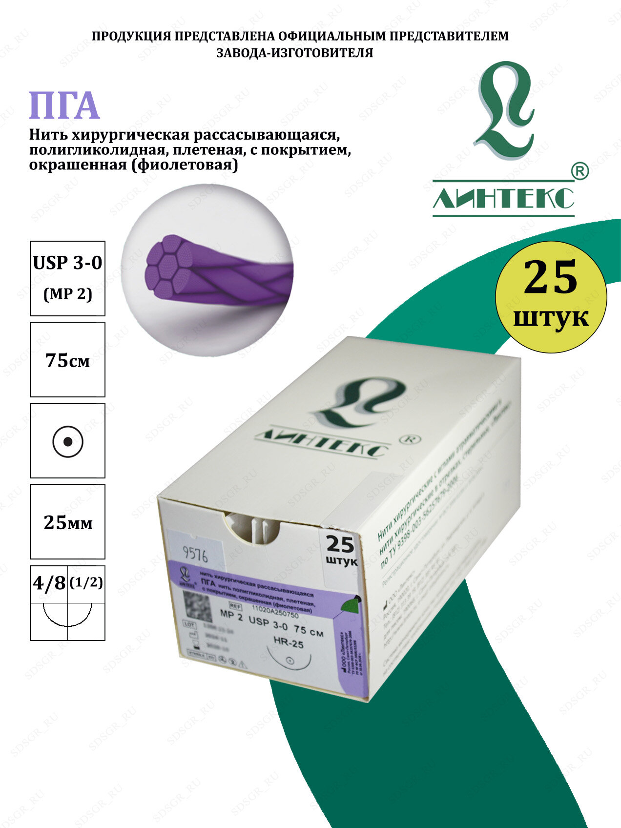 ПГА нить плетеная Полигликолид, USP 3-0 (МР 2) фиолетовая 75 см, с иглой Колющая HR-25, (25 шт/уп), шовный хирургический материал Линтекс (Россия): сравнение цен, характеристики, фото, актуальное наличие и цены.