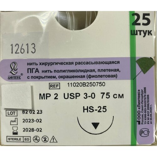 ПГА нить плетеная Полигликолид, USP 3-0 (МР 2) фиолетовая 75 см, с иглой Режущая HS-25, (25 шт/уп), шовный хирургический материал Линтекс (Россия): сравнение цен, характеристики, фото, актуальное наличие и цены.