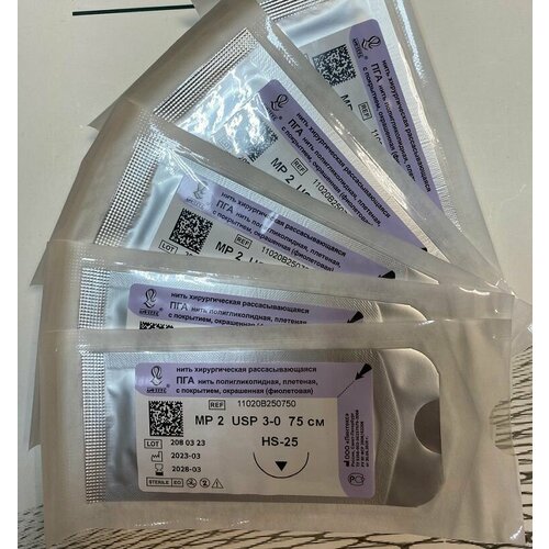 ПГА нить плетеная Полигликолид, USP 3-0 (МР 2) фиолетовая 75 см, с иглой Режущая HS-25, (5 шт/уп), шовный хирургический материал Линтекс (Россия): сравнение цен, характеристики, фото, актуальное наличие и цены.