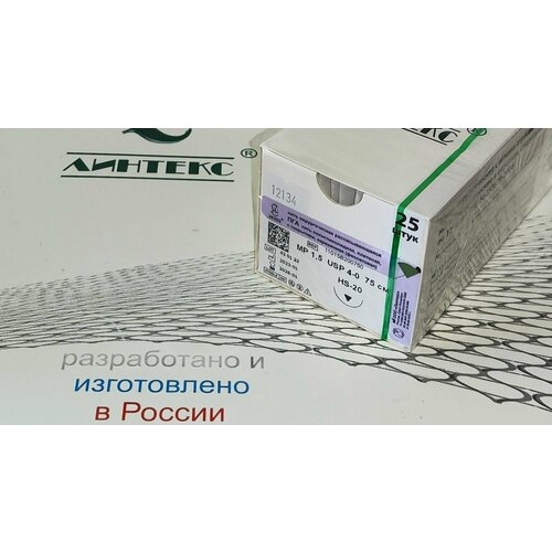 ПГА нить плетеная Полигликолид, USP 4-0 (МР 1,5) фиолетовая 75 см, с иглой Режущая HS-20, (25 шт/уп), шовный хирургический материал Линтекс (Россия): сравнение цен, характеристики, фото, актуальное наличие и цены.