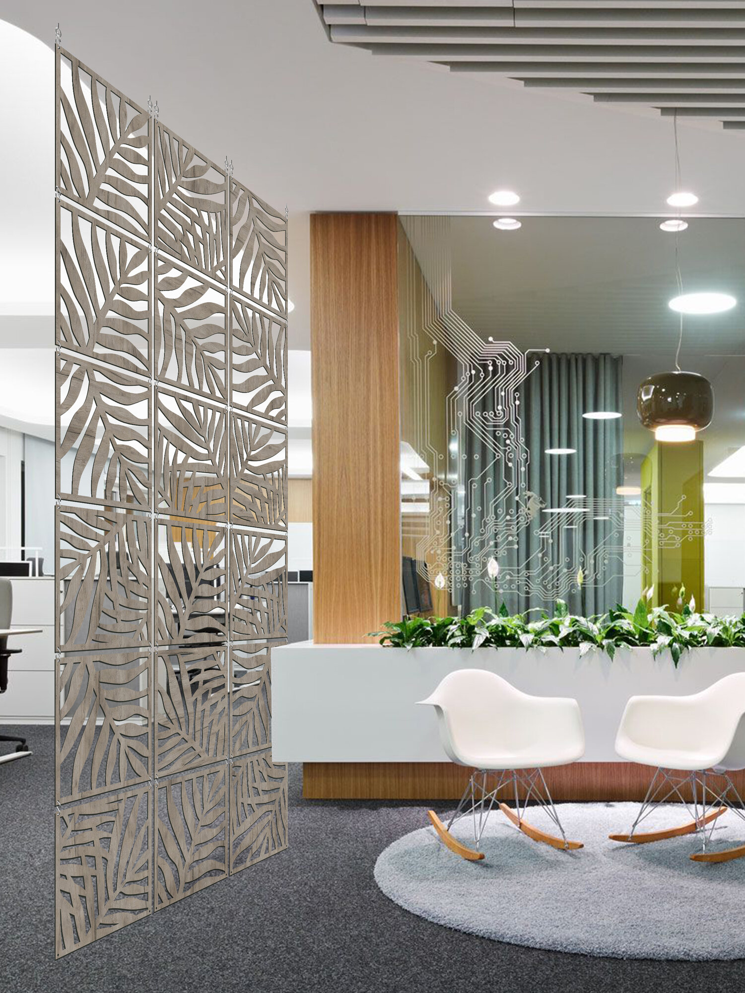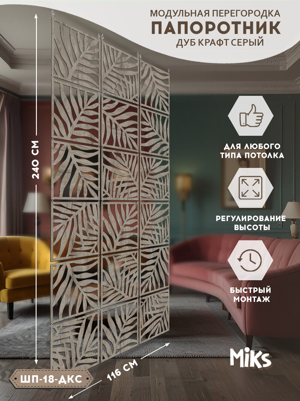 Ширма подвесная – модульная перегородка для зонирования помещения от Российской фабрики MiKs. Хотите стильный современный и уникальный интерьер в своей квартире, доме, ресторане или офисе? Не знаете, как зонировать пространство в своей гостиной, спальне, кухне, в кабинете или детской комнате, чтобы это было красиво, функционально и недорого? Компания Микс знает решение. Декоративный элемент мебели для визуального зонирования пространства – подвесная ширма. Это декоративная перегородка, сделанная из высококачественных материалов, имитирующих дерево разных пород. Ширма для зонирования пространства имеет отменные эстетические качества, благодаря чему служит настоящим украшением интерьера, подчеркивая стиль и элегантность оформления. Подвесная ширма для зонирования пространства от компании Микс выглядит стильно, красиво и современно и подойдет в любой интерьер. Ширма состоит из 18 штук панелей, размером 38*38 см с универсальными креплениями, что позволяет создать свою индивидуальность рисунка ширмы. Проявите свою фантазию и создайте уникальный индивидуальный дизайн своей ширме! Если четко следовать по инструкции, то перегородка очень легко и быстро собирается. В комплект уже входит качественный основной крепёж для монтажа перегородки к деревянному или бетонному потолку. Вы также можете приобрести в нашем магазине дополнительный крепёж для монтажа к подвесному потолку без закладной, армстронгу или к гипсокартону, а также приобрести цепи для увеличения длины ширмы для зонирования комнаты. Если требуются дополнительные панели, то их можно отдельно докупить. Минимальное количество 6 шт. Красивые и качественные декоративные ширмы от Микс впишутся в любой интерьер дома, квартиры, дачи. Интерьерные перегородки - ширмы будут стильно смотреться в ресторане, салоне красоты, в медицинских учреждениях, в офисе, в детском саду и других пространствах. Она поможет разделить и улучшить функциональность вашего пространства и создать более комфортную обстановку Так как перегородка пропускает часть света, то можно создавать интересные эффекты с тенями и освещениями. Разделение пространства: модульная перегородка - ширма может помочь разделить ваше помещение на разные зоны, что поможет создать более функциональное и удобное пространство. Например, вы можете использовать перегородку - ширму, чтобы разделить гостиную и зону для работы.