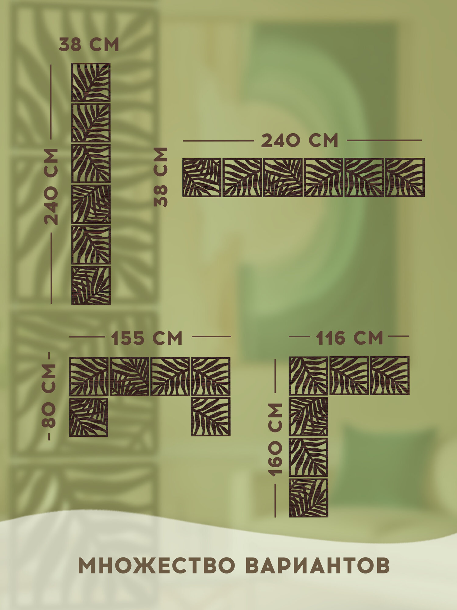 Ширма подвесная – модульная перегородка для зонирования помещения от Российской фабрики MiKs. Хотите стильный современный и уникальный интерьер в своей квартире, доме, ресторане или офисе? Не знаете, как зонировать пространство в своей гостиной, спальне, кухне, в кабинете или детской комнате, чтобы это было красиво, функционально и недорого? Компания Микс знает решение. Декоративный элемент мебели для визуального зонирования пространства – подвесная ширма. Это декоративная перегородка, сделанная из высококачественных материалов, имитирующих дерево разных пород. Ширма для зонирования пространства имеет отменные эстетические качества, благодаря чему служит настоящим украшением интерьера, подчеркивая стиль и элегантность оформления. Подвесная ширма для зонирования пространства от компании Микс выглядит стильно, красиво и современно и подойдет в любой интерьер. Ширма состоит из 24 штук панелей, размером 38*38 см с универсальными креплениями, что позволяет создать свою индивидуальность рисунка ширмы. Проявите свою фантазию и создайте уникальный индивидуальный дизайн своей ширме! Если четко следовать по инструкции, то перегородка очень легко и быстро собирается. В комплект уже входит качественный основной крепёж для монтажа перегородки к деревянному или бетонному потолку. Вы также можете приобрести в нашем магазине дополнительный крепёж для монтажа к подвесному потолку без закладной, армстронгу или к гипсокартону, а также приобрести цепи для увеличения длины ширмы для зонирования комнаты. Если требуются дополнительные панели, то их можно отдельно докупить. Минимальное количество 6 шт. Красивые и качественные декоративные ширмы от Микс впишутся в любой интерьер дома, квартиры, дачи. Интерьерные перегородки - ширмы будут стильно смотреться в ресторане, салоне красоты, в медицинских учреждениях, в офисе, в детском саду и других пространствах. Она поможет разделить и улучшить функциональность вашего пространства и создать более комфортную обстановку Так как перегородка пропускает часть света, то можно создавать интересные эффекты с тенями и освещениями. Разделение пространства: модульная перегородка - ширма может помочь разделить ваше помещение на разные зоны, что поможет создать более функциональное и удобное пространство. Например, вы можете использовать перегородку - ширму, чтобы разделить гостиную и зону для работы .