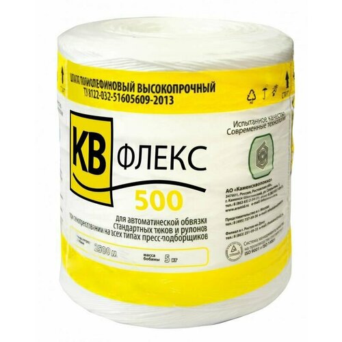 Шпагат КВ Флекс 500 - изготовлен из высококачественного полипропилена. Предназначен для автоматической обвязки тюков или рулонов при прессовании сена или соломы на пресс-подборщиках в сельском хозяйстве. Подходит для пресс-подборщиков любого типа. Одна бабина шпагата позволяет упаковать до 65 рулонов сена массой тюка до 500 кг.