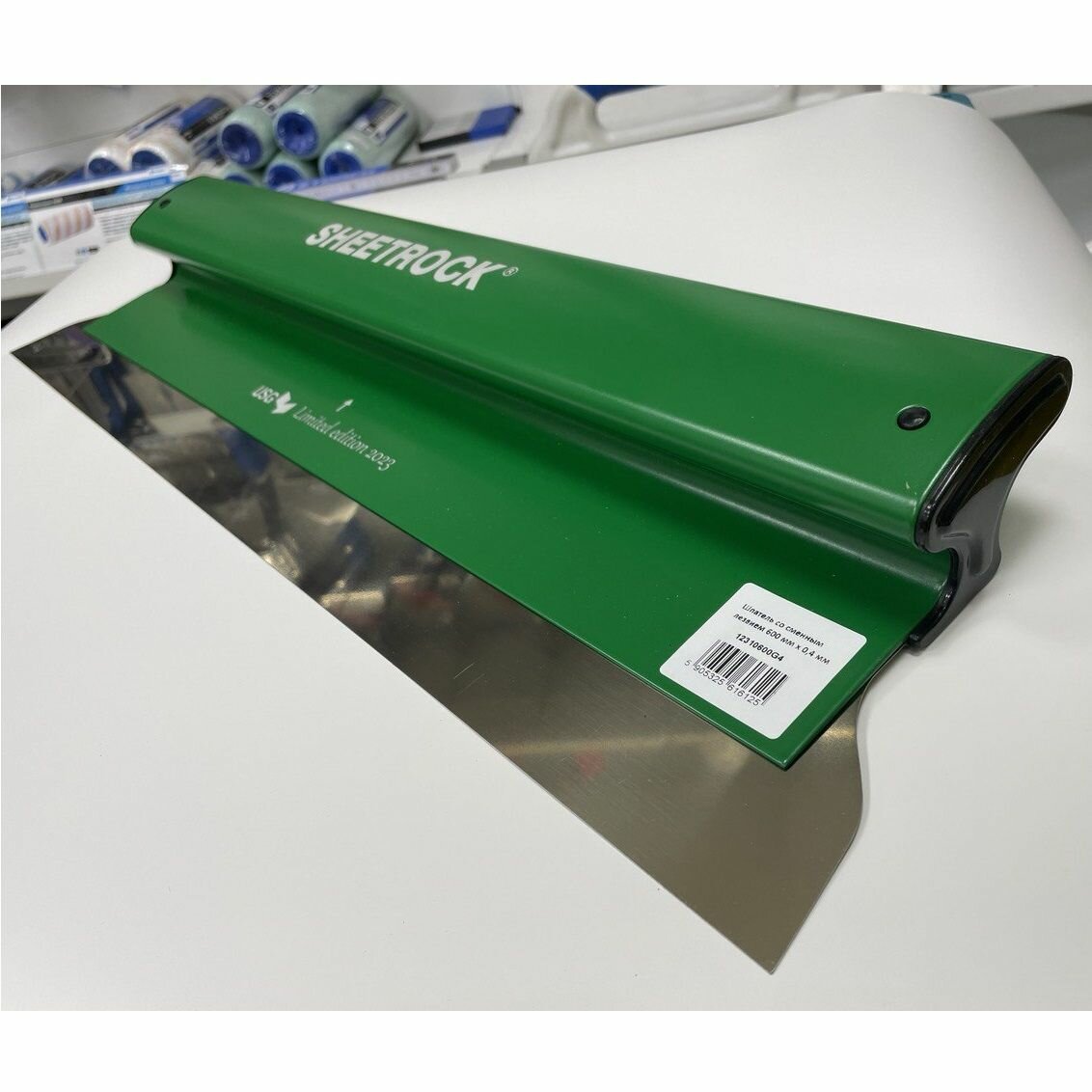 Новый Шпатель SHEETROCK с инновационным покрытием профиля SOFT-TOUCH (софт-тач) и широким сменным лезвием из анодированной нержавеющей стали премиум серии с золотисто-хромированным покрытием, толщиной 0,4мм и острыми углами.