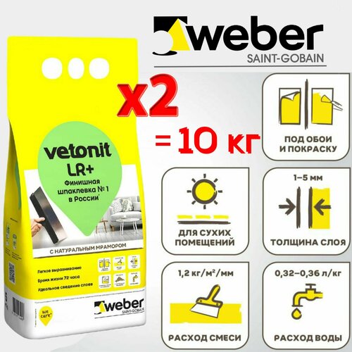 Купить Шпатлевка для стен Vetonit LR+, 2 упаковки по 5 кг, шпаклевка финишная, полимерная, белая, на основе тонкомолотого мрамора. с доставкой по всей России. Шпатлевка для стен Vetonit LR+, 2 упаковки по 5 кг, шпаклевка финишная, полимерная, белая, на основе тонкомолотого мрамора.: сравнение цен, характеристики, фото, актуальное наличие и цены.