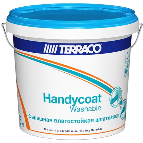 Шпатлёвка финишная влагостойкая Terraco Handycoat Washable предназначена для внутренних работ по подготовке стен к декоративной отделке. Белый материал на основе акриловых полимеров обладает пластичной однородной структурой, благодаря которой легко распределяется по поверхностям с помощью шпателя. Он позволяет выравнивать стены и маскировать их небольшие дефекты.