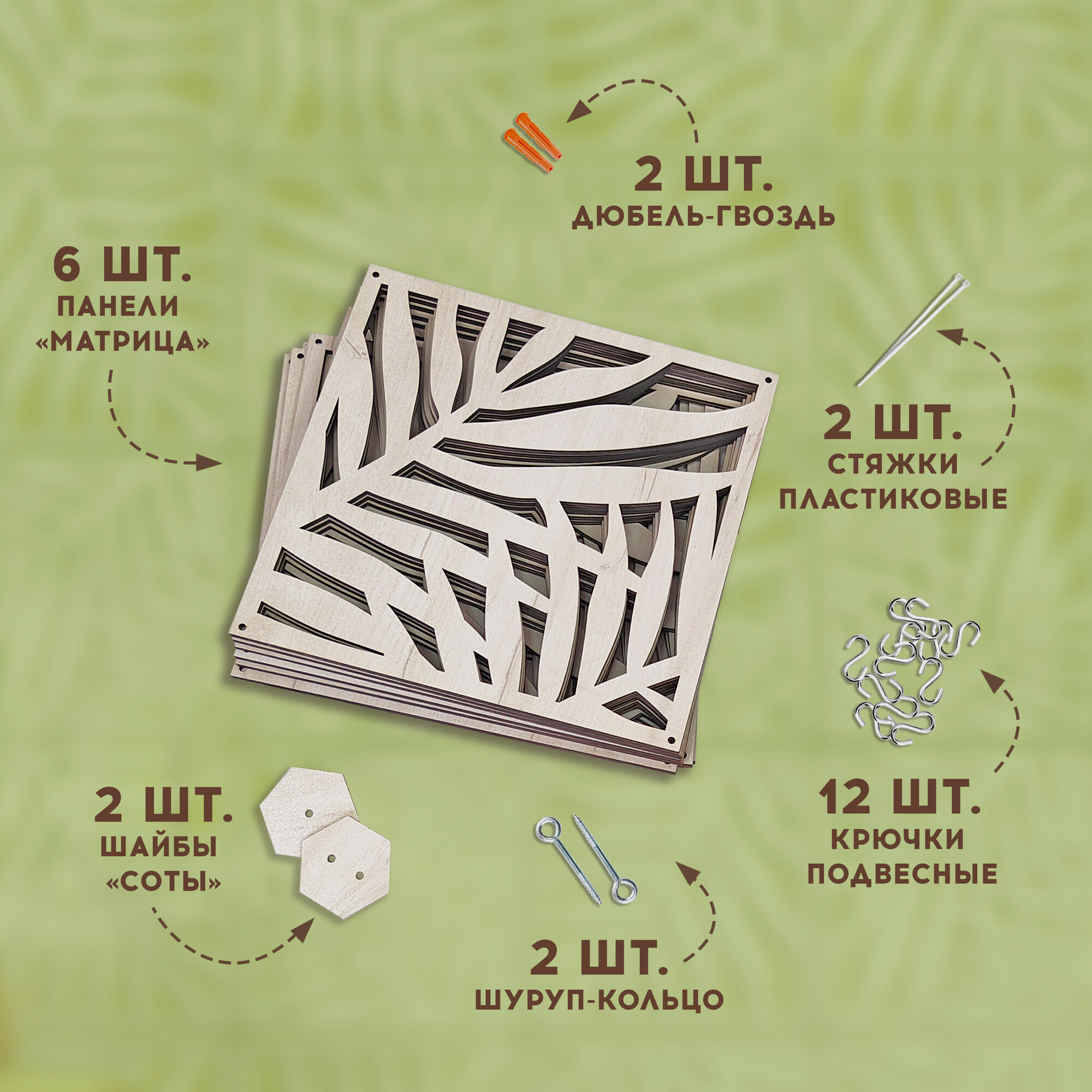 Ширма подвесная – модульная перегородка для зонирования помещения от Российской фабрики MiKs. Хотите стильный современный и уникальный интерьер в своей квартире, доме, ресторане или офисе? Не знаете, как зонировать пространство в своей гостиной, спальне, кухне, в кабинете или детской комнате, чтобы это было красиво, функционально и недорого? Компания Микс знает решение. Декоративный элемент мебели для визуального зонирования пространства – подвесная ширма. Это декоративная перегородка, сделанная из высококачественных материалов, имитирующих дерево разных пород. Ширма для зонирования пространства имеет отменные эстетические качества, благодаря чему служит настоящим украшением интерьера, подчеркивая стиль и элегантность оформления. Подвесная ширма для зонирования пространства от компании Микс выглядит стильно, красиво и современно и подойдет в любой интерьер. Ширма состоит из 24 штук панелей, размером 38*38 см с универсальными креплениями, что позволяет создать свою индивидуальность рисунка ширмы. Проявите свою фантазию и создайте уникальный индивидуальный дизайн своей ширме! Если четко следовать по инструкции, то перегородка очень легко и быстро собирается. В комплект уже входит качественный основной крепёж для монтажа перегородки к деревянному или бетонному потолку. Вы также можете приобрести в нашем магазине дополнительный крепёж для монтажа к подвесному потолку без закладной, армстронгу или к гипсокартону, а также приобрести цепи для увеличения длины ширмы для зонирования комнаты. Если требуются дополнительные панели, то их можно отдельно докупить. Минимальное количество 6 шт. Красивые и качественные декоративные ширмы от Микс впишутся в любой интерьер дома, квартиры, дачи. Интерьерные перегородки - ширмы будут стильно смотреться в ресторане, салоне красоты, в медицинских учреждениях, в офисе, в детском саду и других пространствах. Она поможет разделить и улучшить функциональность вашего пространства и создать более комфортную обстановку Так как перегородка пропускает часть света, то можно создавать интересные эффекты с тенями и освещениями. Разделение пространства: модульная перегородка - ширма может помочь разделить ваше помещение на разные зоны, что поможет создать более функциональное и удобное пространство. Например, вы можете использовать перегородку - ширму, чтобы разделить гостиную и зону для работы .