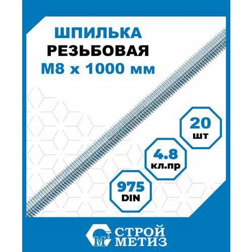 Шпилька резьбовая длиной 1 метр (диаметр 8 мм) имеет цилиндрический стержень с полной метрической резьбой, что дает возможность скреплять изделия плотно друг к другу. Шпилька произведена из крепкой стали и за счет большого диаметра способна выдержать большие нагрузки. Резьба целая, ровная, не прослаблена и без заусенцев. Сама шпилька прямая и жесткая, а оцинковка качественная.