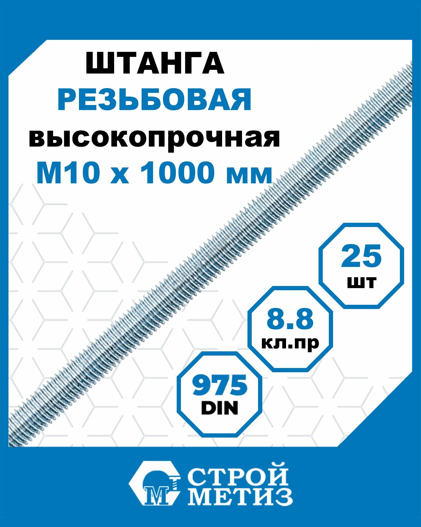 Шпильки, штанги высокопрочные Стройметиз резьбовые М10х1000, DIN 975 кл. пр.8.8 цинк, 25 шт.: сравнение цен, характеристики, фото, актуальное наличие и цены.