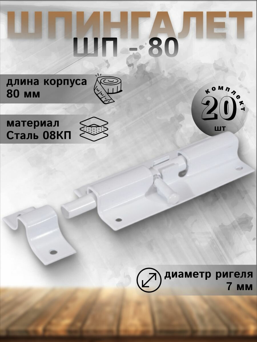 Купить Шпингалет дверной DOMART ШП — 80, щеколда для двери комплект 20 шт, задвижка белая с доставкой по всей России.