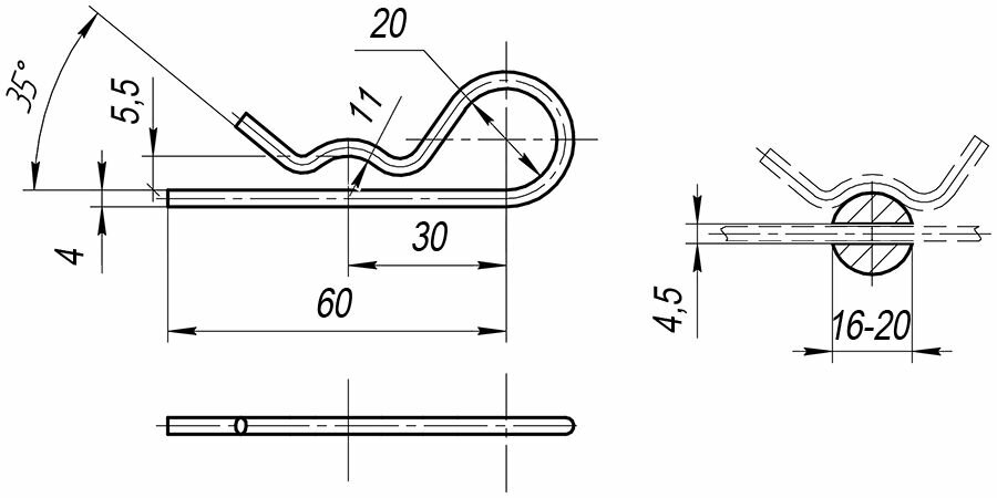 Шплинт Алтервиа 4х60, DIN 11024, Form Е A00002.240060 пружинный, игольчатый, с одиночной навивкой. **Материал:** * Нержавеющая сталь 08Х18Н10 **Исполнение:** * Нержавеющая сталь без покрытия. * Подходит для отверстия с Ø 4,5 мм. * Для вала/оси/пальца Ø 16 - 20 мм.