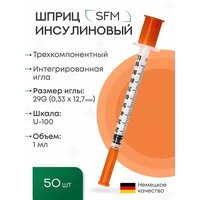 Шприц 1,0 мл. инсулиновый U — 100 (3-х) SFM, Германия одноразовый стерилизованный с интегрированной иглой 0,33 х 12,7 — 29G № 10 (полибэг), 50 шт: сравнение цен, характеристики, фото, актуальное наличие и цены.