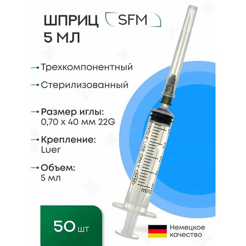 В современной медицине одноразовые стерилизованные шприцы являются незаменимым инструментом для различных медицинских процедур. Шприц 5 мл SFM, изготовленный в Германии, представляет собой высококачественное медицинское изделие, предназначенное для обеспечения безопасных и эффективных инъекций. Этот трехкомпонентный шприц оснащен надетой иглой 0,70 х 40 - 22G, что делает его удобным для использования в различных медицинских учреждениях.