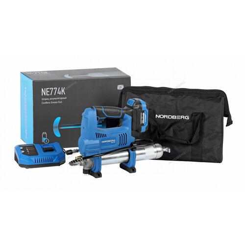 Шприц аккумуляторный NORDBERG NE774K – специальный инструмент для технического обслуживания автомобильной, грузовой и сельскохозяйственной техники в автомастерских и на СТО.