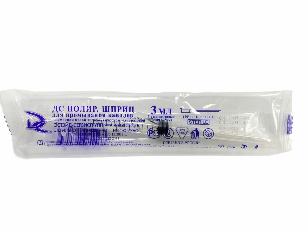 Купить Шприц для промывания каналов со сменной иглой эндодонтической, одноразовой 3 мл (15 шт) ДС Полир, Шприц эндодонтический от NeoHealth с доставкой по всей России.