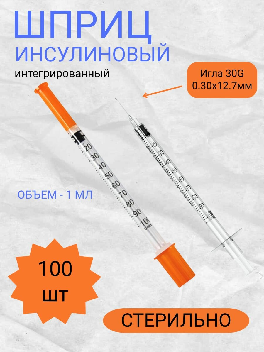 Шприц инсулиновый с интегрированной иглой (30G 0.30×12.7), медицинский, стерильный, 1 мл — 100 шт: сравнение цен, характеристики, фото, актуальное наличие и цены.