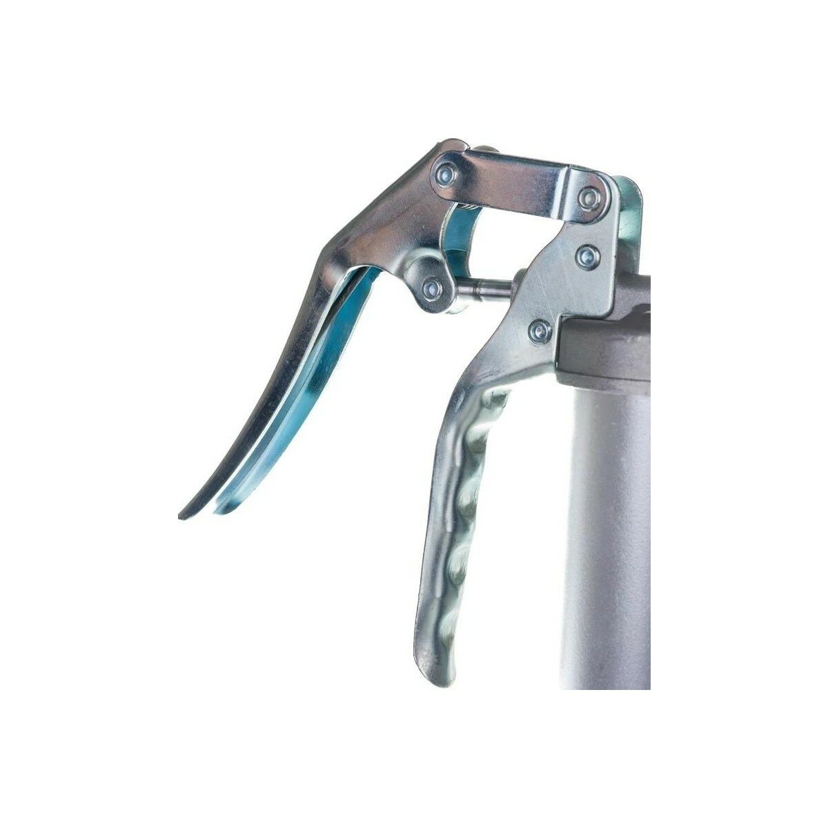 Очень популярный плунжерный шприц для одной руки – это высококачественный инструмент, предназначенный для использования в ограниченных пространствах и доступе к пресс масленке, многократного ежедневного применения. Область применения – промышленность, легковой и грузовой автотранспорт, сельскохозяйственная и строительная техника, горное дело. Развивает рабочее давление 5000 PSI / 345 BAR с возможностью дозированной подачи смазки. Имеет порошковое покрытие, обладает прочной конструкцией корпуса (1,2 мм), профессиональной пружиной, ЧПУ головкой, большими круглыми насадками для быстрой и простой заправки. Удобный механизм и конструкция рукоятки не сдавливает пальцы при работе. Шприц имеет три варианта заправки: вручную шпателем, посредством специального прибора через загрузочный клапан, либо путем закладки стандартного картриджа объемом 400 грамм. Поставляется с гибким шлангом и профессиональной 4-х лепестковой насадкой.