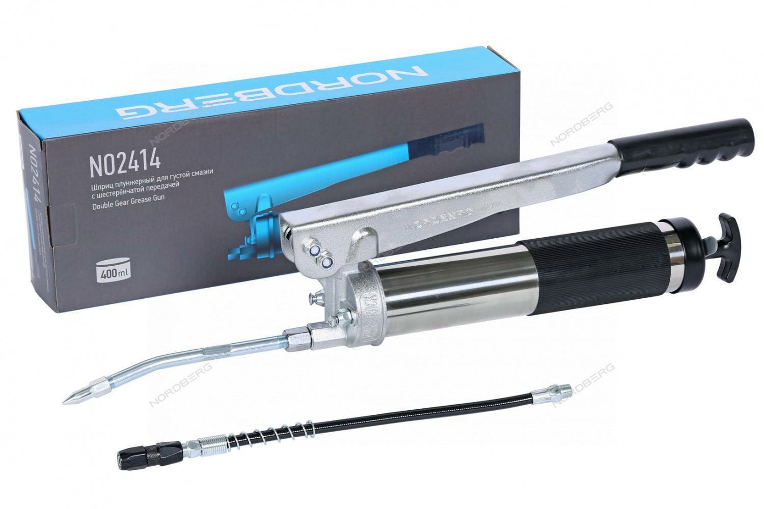 Плунжерный шприц для густой смазки NORDBERG NO2414 – вспомогательное оборудование для обслуживания узлов и агрегатов автотранспортной техники и промышленного оборудования в автосервисах и СТО.