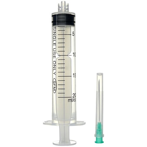Шприцы трехкомпонентные одноразовые от 2 до 10 мл изготовлены с коаксиальным (по центру) расположением крепления иглы, шприц 20 мл поставляется с креплением сбоку.
