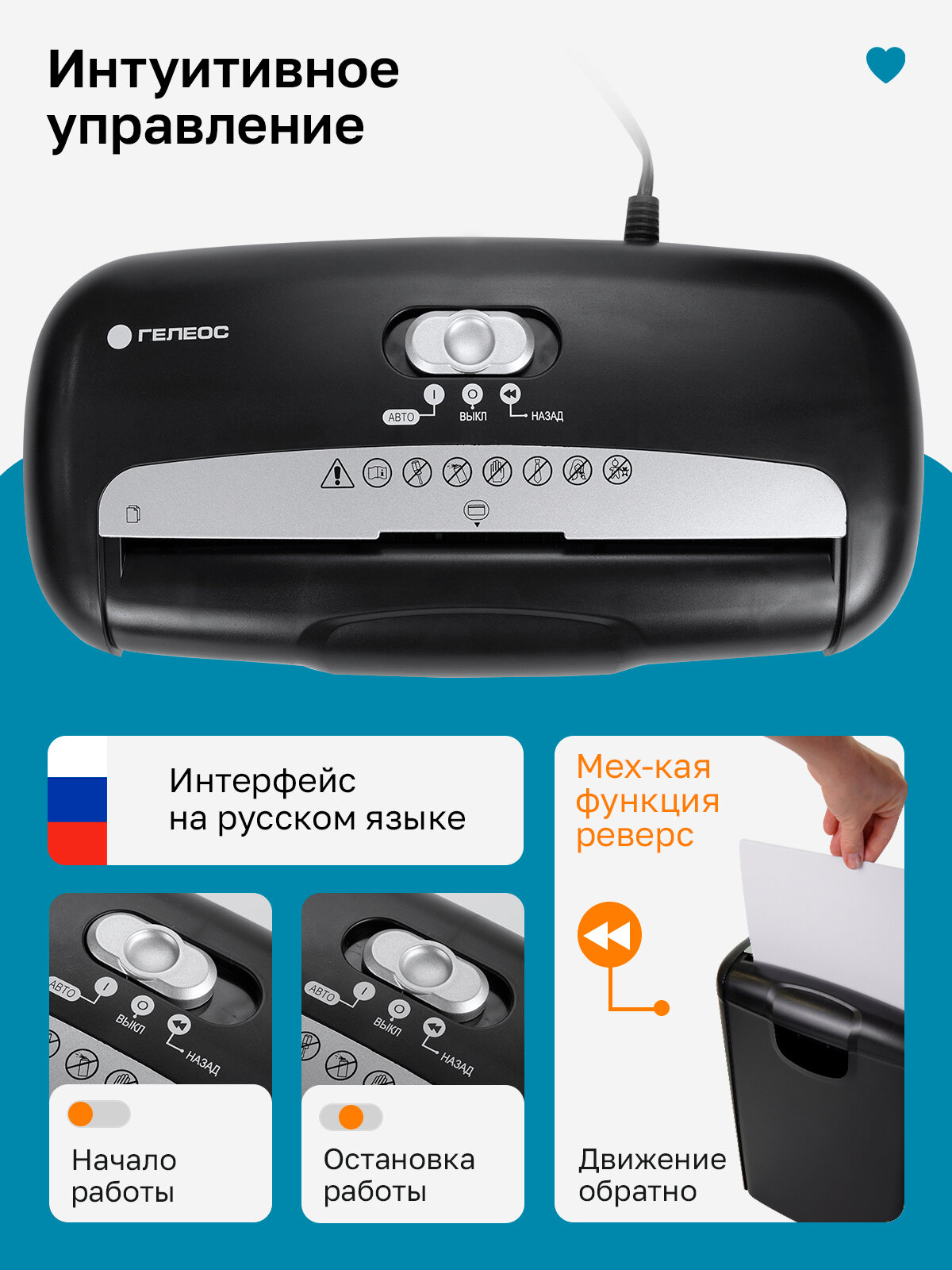 Шредер для бумаги ГЕЛЕОС УД Смарт 102Ч, фрагмент 5,8 мм, секретность P-2, корзина 10 л: сравнение цен, характеристики, фото, актуальное наличие и цены.