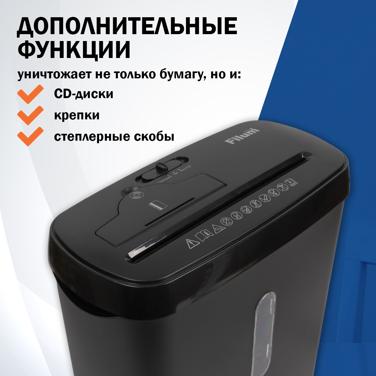 Уничтожитель бумаг Filum FL-SH011-02S, 8 листов, безоп:2, 11 литров, 2,8м/мин, уничт CD, ур. шума: 70Дб: сравнение цен, характеристики, фото, актуальное наличие и цены.
