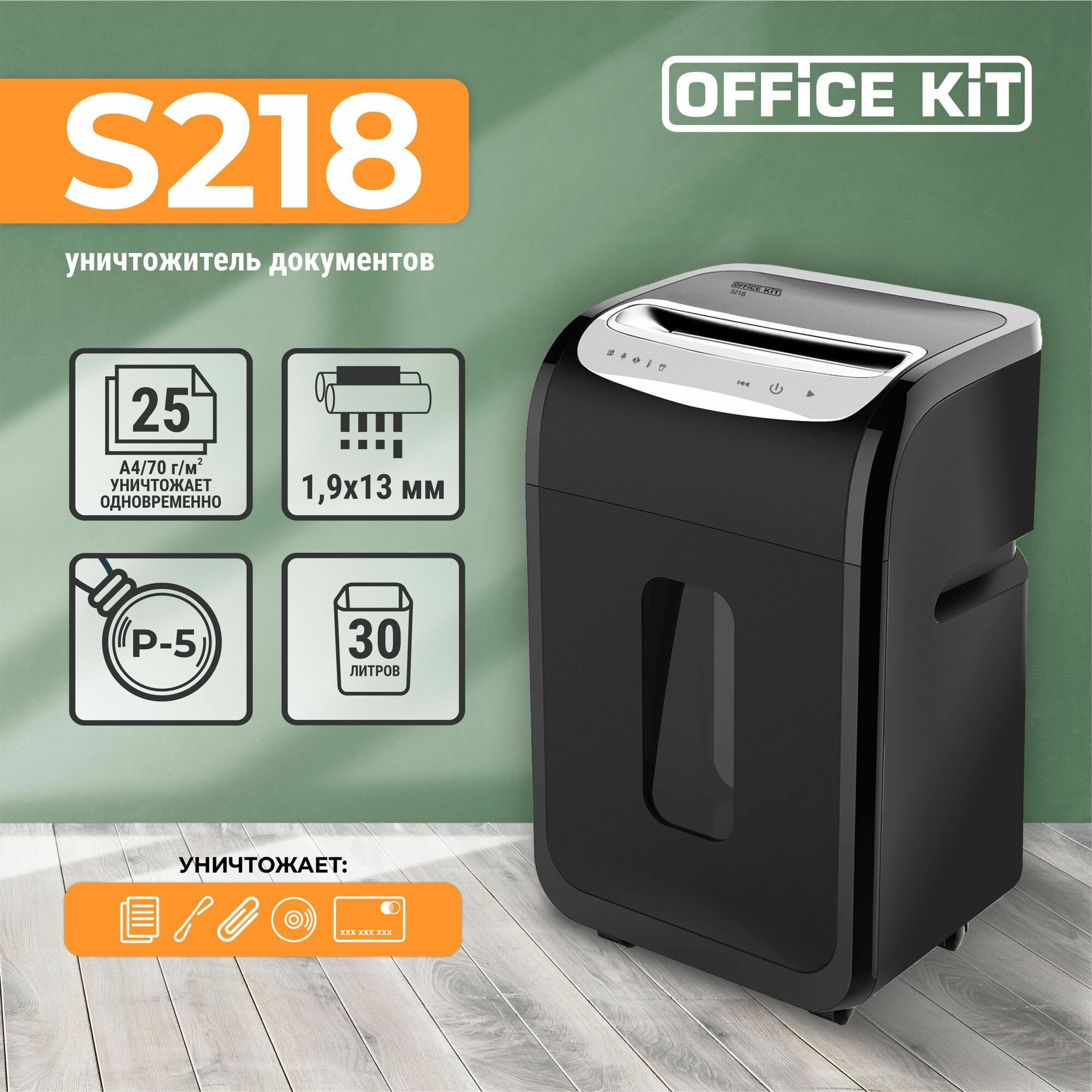Шредер Office Kit S218, размер фрагмента 1,9х13, уровень секретности P-5, уничтожает 25 листов: сравнение цен, характеристики, фото, актуальное наличие и цены.