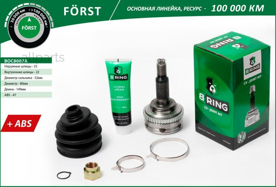 BRING BOC8007A Шрус CHEVROLET Lacetti (00-) (наруж.) [с ABS, 33/22] (BOC8007A) B-RING FORST