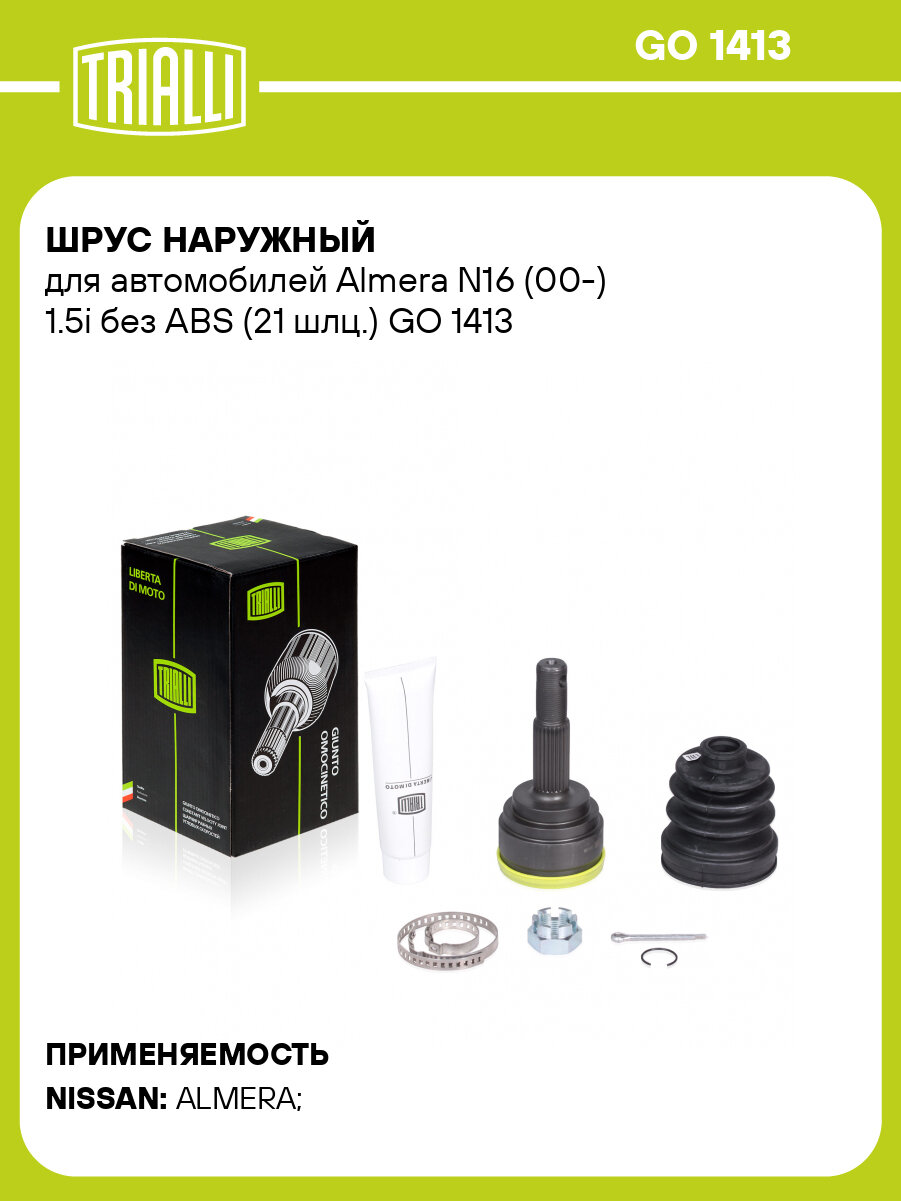 ШРУС наружный для автомобилей Almera N16 (00-) 1.5i без ABS (21 шлц.)