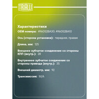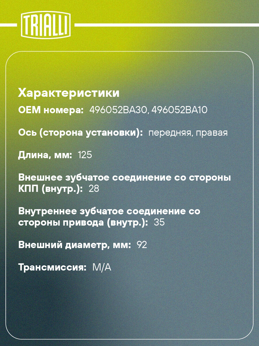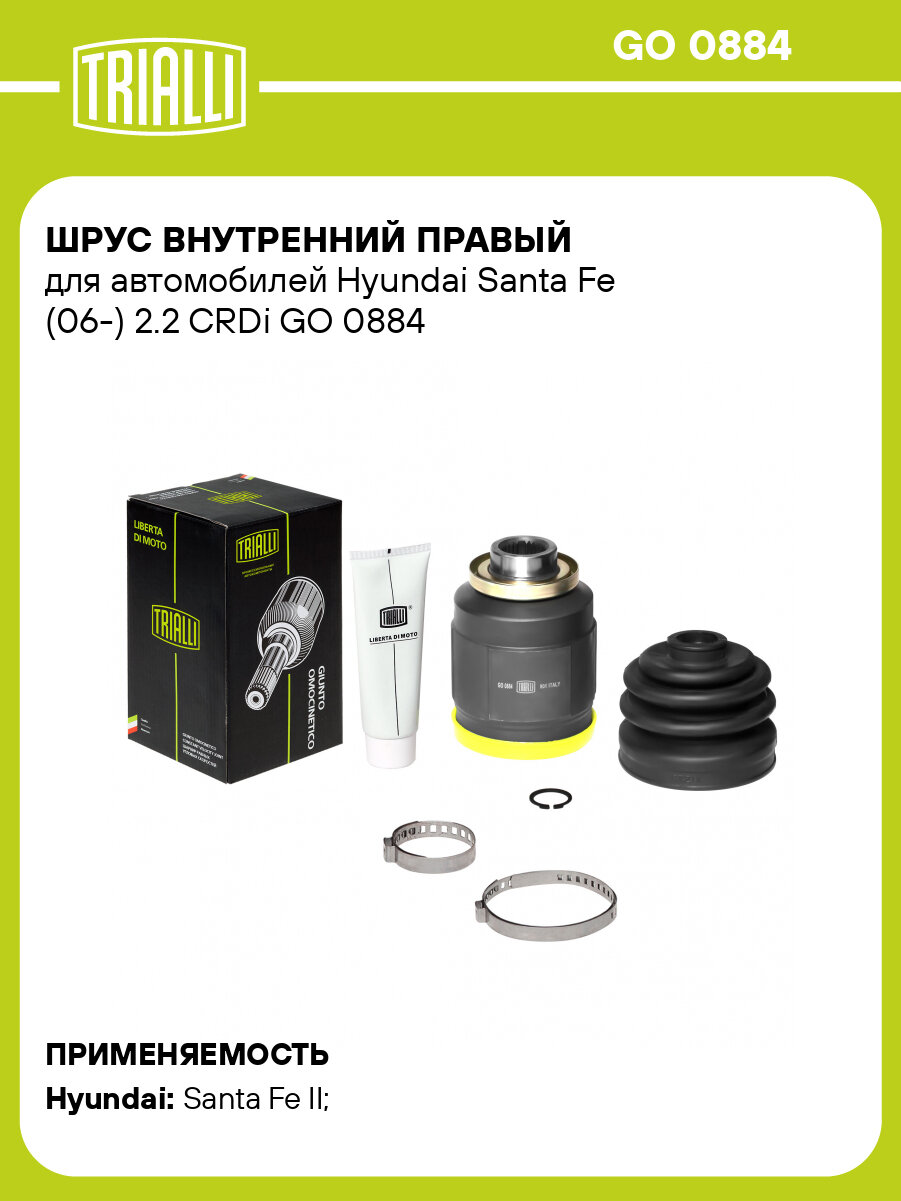 ШРУС внутренний правый для автомобилей Hyundai Santa Fe (06-) 2.2 CRDi GO 0884 TRIALLI: сравнение цен, характеристики, фото, актуальное наличие и цены.