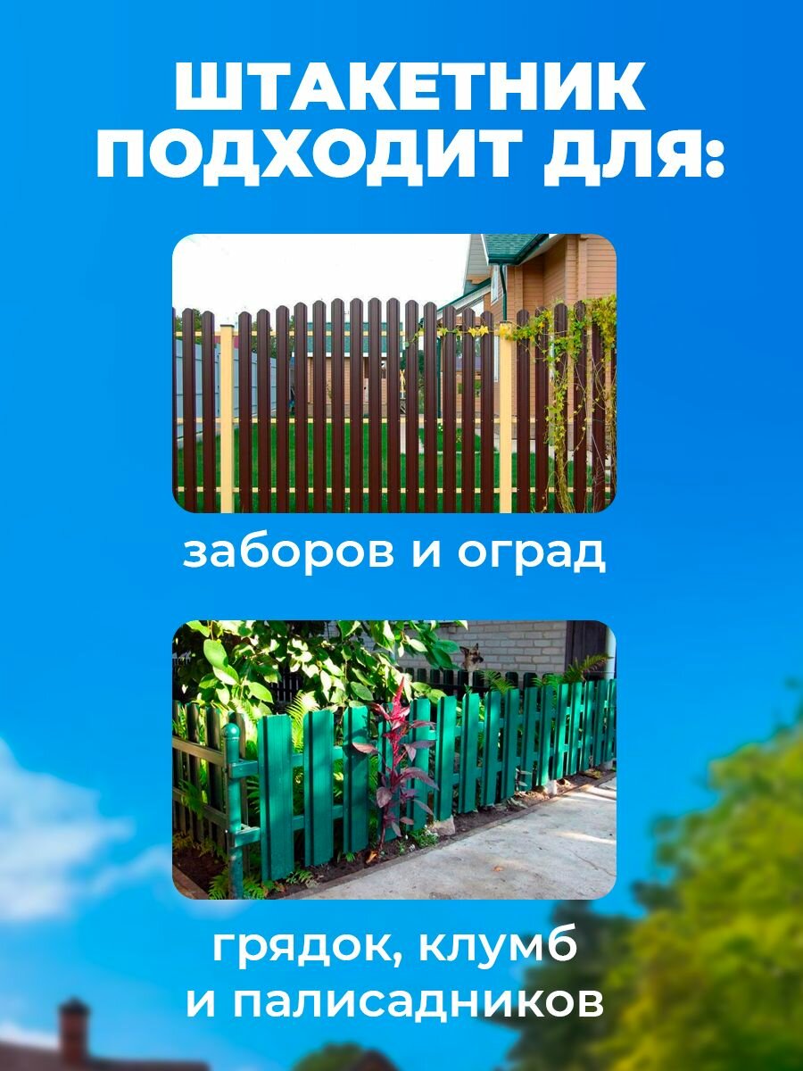 Штакетник из ПЭТ "Волна" - это идеальное решение для создания забора. Благодаря своим уникальным свойствам, он превосходит традиционные материалы, такие как дерево или металл. Штакетник скругленный сохраняет свою яркость и привлекательный внешний вид на протяжении долгого времени. Забор не ржавеет и не подвергается коррозии. Если на поверхности штакетника появляется царапина, сквозная прокраска делает ее практически незаметной. При этом пластиковый забор, гнется под углом до 180 градусов, принимая первоначальную форму без следов излома, а высота волны в 1 сантиметр (профиль С10) придает дополнительную жесткость готовой конструкции ограждения. У него отличные потребительские свойства и качество. Пластиковый штакетник закругленный легко устанавливается благодаря своим габаритам и весу. Вы сможете самостоятельно создать красивое и надежное ограждение без лишних затрат времени и денег на дополнительные работы. Этот штакетник с закругленной верхней стороной также отлично справляется с экстремальными погодными условиями. Он устойчив к морозу и высоким температурам, не выцветает на солнце и не тускнеет. Вы можете быть уверены в том, что ваш забор будет выглядеть новым и привлекательным долгое время. Штакетник из пластика подходит для самых разных целей. Пластиковый забор идеально подойдет для ограждения огорода, барьеров, грядок, детских и спортивных площадок. Вы сможете создать красивые обрамления для клумб и цветников или оградить летние кафе и площадки для отдыха. Температурный режим эксплуатации подходит для большинства регионов России. Штакетник из ПЭТ "Волна"-это эстетически привлекательное решение, которое поможет вам создать красивый забор. Данный штакетник выпускается в разных цветах.